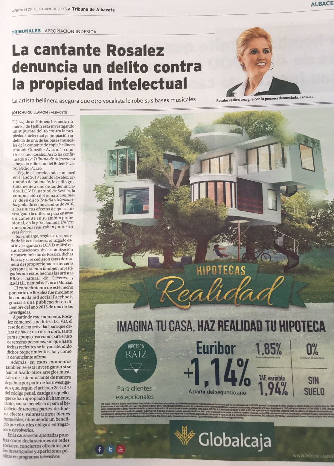 La cantante Rosalez denuncia un delito de propiedad intelectual sobre una de sus bases musicales.